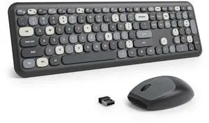Vumilstek Colorful Black Quiet Keyboard and Mouse Wireless, Retro Typewriter 104-Key Fullsize Keyboard Round Keys for Home Office Dorms PC/Laptop/Desktop(Black Mixed)