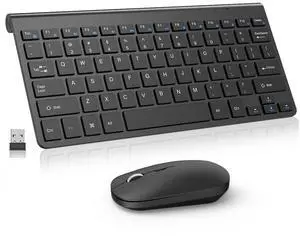 Compact Wireless Keyboard and Mouse Combo, Mini Portable Travel Keyboard and Silent Mouse Set with USB Receiver, Quiet Click, Small Size, Adjustable 2400 DPI for Computer, Laptop, PC, Windows - Black