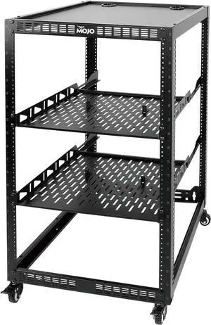 20U Open Frame Network Rack for Servers&AV Gear, Server Rack 4-Post with casters, Mobile Server Rack with 2 PCS 1U Server Rack Shelf & Mounting Hardware, AV Rack for 19" Network/Servers/Audio