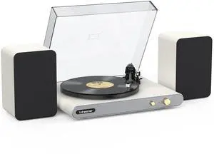 Vinyl Record Player with 40W Bookshelf Speakers and Dual Bluetooth,Hi-fi System Turntable with USB Record,Built-in Phono Preamp, Counterweight, Pitch and AT-3600L,PU Leather White