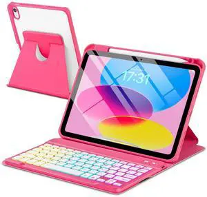 Touchpad for iPad A16 11th/10th Generation Case with Keyboard, 7 Color Backlit 360 Rotation Cover with Pencil Holder,Detachable Keyboard for iPad 11 inch 2025/10th Gen 10.9'' 2022 (Watermelon Red)