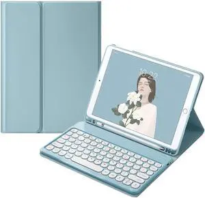 for Kindle Fire HD 10 Keyboard case 2021,Detachable Round Keys Keyboard Case for Fire HD 10 /HD 10 Plus Tablet (11th Generation),Folio Fire hd 10 case with Keyboard for Women Kids (Blue)