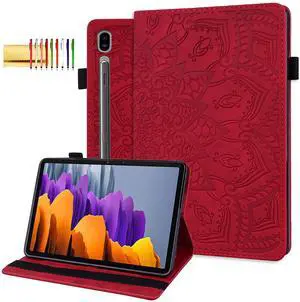 Folio Case for Samsung Galaxy Tab S9 FE+ 12.4" SM-X610/SM-X616, Techcircle Mandala Embossed PU Leather Stand Soft Back Cover Slim Light Elastic Band Protective Case with Card Slots+Pen Holder, Red