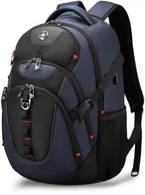 Swissdigital Design Laptop Backpack, Travel Backpack with USB Charging Port Fits 15.6 inches Computer, 31L College School Bookbag for Men, Blue/Black ^^ SD803-12