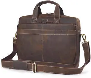 Men's Full Grain Leather Briefcase Large 17 Inch Business Travel Laptop Messenger Bag Tote with YKK Metal Zippers