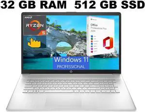 HP 17 Laptop, 17.3" HD+ Touchscreen, AMD Ryzen 5 7530U (6-Core) Processor, AMD Radeon Graphics, 32GB DDR4  512GB PCIe SSD, Wi-Fi 6, Bluetooth, Webcam, Windows 11 Pro ,Office 2024 License