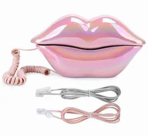 Moofey Lip Phone, Number Storage Pink Phone, Room Decor Wire Telephone Home Decoration for Home Hotel Office Decor Gift