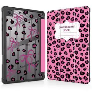 Mektron Case for Samsung Galaxy Tab S6 Lite 10.4 Inch 2024/2022/2020 with S Pen Holder, Multi-Angle Viewing with Shockproof Cover Clear Shell + Trifold Stand + Auto Wake/Sleep, Composition Book-Bows
