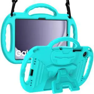 LTROP Case for Samsung Galaxy Tab A9 Plus 2023 11 Inch (Model SM-X210/X216/X218) with Shoulder Strap Handle & Kickstand, Shockproof Bumper Case for Galaxy Tab A9+ Plus 2023 11" - Turquoise