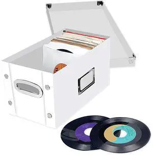 Snap-N-Store Vinyl Record Storage Box - 7"/45 RPM - 1 Pack Crate Holds up to 75 Vinyl Albums - White