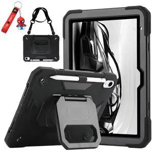Case for iPad 11th (A16) 11" 2025, iPad 10th Generation 10.9" 2022,Military Grade Shockproof iPad Case Built-in 360° Rotating Stand/Pen Slot/Shoulder Strap, for iPad 11th Gen/10th Gen (Black)