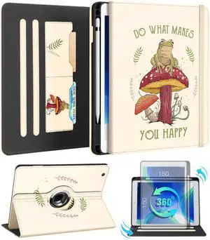 Kidcube for iPad 9th/8th/7th Generation Case 10.2 Inch - for Women Girls Kids Cute Rotating Stand Folio Cover with Pencil Holder & Card Slot Cool Frog Mushroom Design for iPad 9th/8th/7th Gen Cases