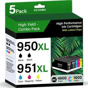 5-Pack 950XL 951XL Ink Cartridges Combo Pack Compatible for HP 950 951 Ink Cartridges Combo Pack Use for HP OfficeJet Pro 8600 8610 8620 8100 8630 8640 276DW 251DW Printers (Black Cyan Magenta Yellow