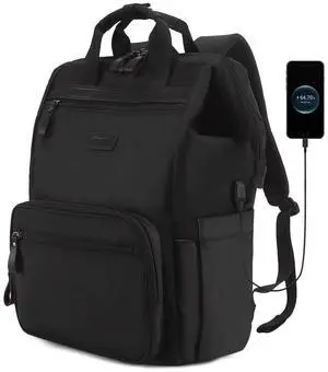 Timeet Laptop Backpack for Women Men, 17 Inch Travel Backpack with USB Charging Port, Water Resistant & Anti-theft for Work College Business, Multifunctional Carry on Backpack, Mousse Black