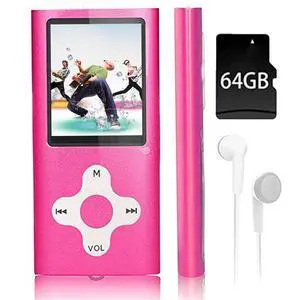 64GB MP3 Player,1.8 inch Screen Portable Music Player with Build-in Speaker/Photo/Video Play/FM Radio/Voice Recorder/E-Book Reader,Earphones/USB Included
