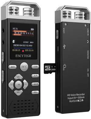 ESCYTEGR 144GB Digital Voice Activated Recorder 1536KBPS Audio Voice Recorder with Playback Recording Device Dictaphone Sound Tape Recorder with Password Protection for Lectures,Meetings