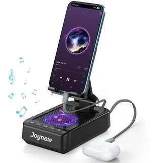 Joymate Gifts for Men Women, 10,000mAh Charging Phone Stand with Cables and Bluetooth Speaker, 360 Rotatable Angle Cell Phone Holder with HD Stereo Sound Fits Phones,Tablet (Black)