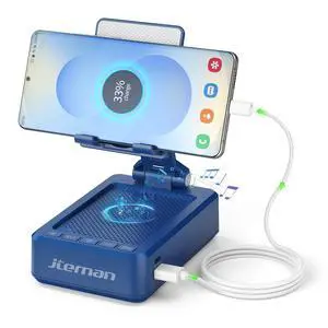 TechGlow Gifts for Men Women Foldable Cellphone Stand with Bluetooth Speaker and Charging Funtion Birthday Gift Idea for Mom Dad Cool Gadget Tech Gifts-Blue