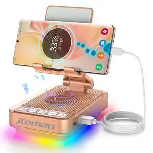 Arindar Gifts for Men Women,Cell Phone Stand with Wireless Bluetooth Speaker,Colorful Ambient Light 360 Foldable for Tablet iPhone Android 2 Wireless Microphones HD Surround Sound (Black)