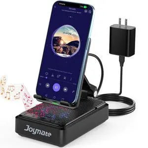 Joymate Gifts for Men and Women, Wireless Phone Charger Stand with Bluetooth Speaker and Adjustable Angle Phone Holder for Desk Tech Gift for Birthday/Valentines Day/Christmas(Black)