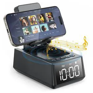 Presents for Men/Women, Cell Phone Stand with Wireless Bluetooth Speaker, 12H Time Display Unique Presents for Him, Husband, Boyfriend, Dad, Her, Wife, Mom, Cool Multi Functional Gadget (Crow Black)