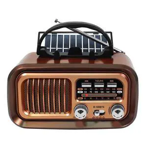 Bingxue Retro Bluetooth Radio with Solar/D Battery Operated/USB Rechargeable/DC 5V Charging, AM/FM/SW,TWS, USB/TF Playback, Phone Stand & Portable Speaker - Perfect for Outdoor/Home Use
