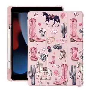 BlHMCASE Cute Western Cowgirl Horse for iPad 7th/8th/9th Generation Case with Pencil Holder, Auto Sleep/Wake, Pink Leather Soft TPU Back Cover for iPad 10.2 Inch 2019/2020/2021