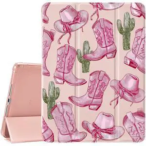CozyNestCY Pretty Girl Bow Boot Case for Ipad Air5/Air4 10.9 Inch Cute Cowgirl Design Leather Cover Auto Sleep/Wake Soft TPU Back Shell for Ipad with Pencil Holder (Girls Women Kid)