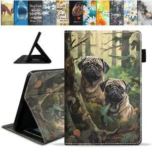 BWOOLL Case for Fire HD 10 Tablet 10.1 inch (9th/7th Generation, 2019/2017 Release), Slim Lightweight PU Leather Stand Cover with Auto Wake/Sleep, Jungle Camo Pug
