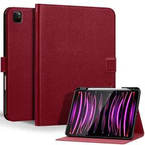 Thryxop Genuine Leather Case for iPad Pro 11 Inch 4th/3rd/2nd/1st Generation 2022/2021/2020/2018 ^^ with Pencil Holder and Adjustable Stand, Magnetic Closure, Auto Wake/Sleep Cover ^^ Wine Red