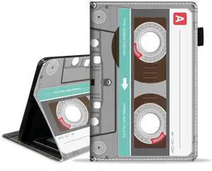 POIUYTREW Case for Kindle Fire 7 Tablet (7", 12th Generation, 2022 Release) - PU Leather Folio Case Smart Cover with Stand & Auto Wake/Sleep, Retro Music Cassette