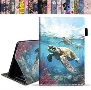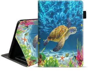 WEUIUJKILO Case for All-New Kindle Fire 7 Tablet 7" Display (12th Generation, 2022 Release) - Slim PU Leather Stand Cover with Auto Sleep Wake, Sea Turtle