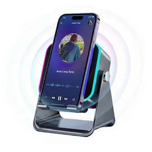 Enfriliv Wireless Induction Audio Bluetooth Speaker 5in1 Phone Holder Emergency Rechargeable with Colorful Ambient Light 300 Foldable for Tablet iPhone Android, Gifts for Men Women (Black) Mirror