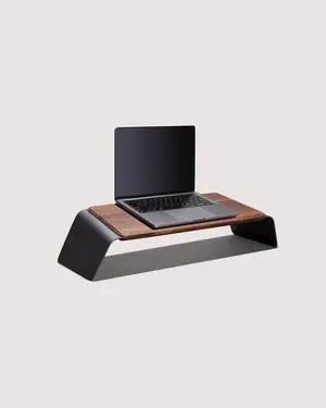 NOOE Laptop Stand Desk Top Table Holder, 10 Degree Angled, 46.5 x 22.5 in Working Space, American Walnut Wood, Aluminium, Anthracite Finish, NOOE_GFS01NEBKSS