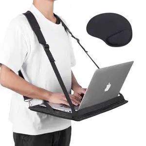 Suncalla Laptop Harness Shoulder Strap with Ssd Storage Pouch Portable Wearable Laptop Stand Desk up to 16 Inch Tablets for Work, Travel, Office, Posture Support