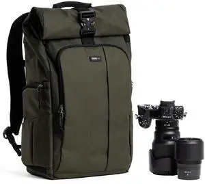 Think Tank FocusPoint 30L RollTop Camera Backpack - Greenway: Expandable Travel & Camera Backpack with Laptop Sleeve, Quick Side and Back Access, Rain Cover Versatile Photography & Travel Bag