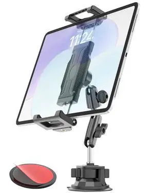 FPN iPad Pro 12.9 Inch Tablet Mount with Dual Suction Cup Base for Truck Car Windshield, Aluminum Arm Heavy Duty Tablet Suction Holder for Window, Compatible with 6.5-12.9" Tablets