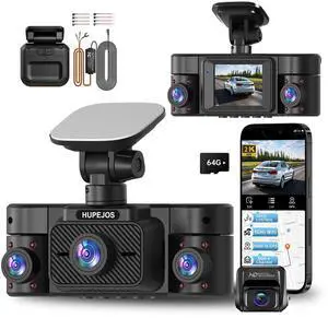 HUPEJOS Dash Cam Front and Rear Inside 360 Dash Caemra for Cars 4 Channel DashCam V50-4CH with Radar Hardwire Kit for 24H Parking Mode