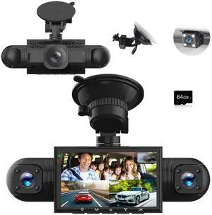 360 Degree View 4 Channel Dash Cam Front and Rear Inside Left Right, Dash Camera for Cars, 1080P Full HD 170 Deg Wide Angle Dashboard Camera with 64GB Card,G-Sensor,Loop RecordingNight Vision