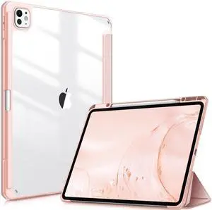 Fintie Hybrid Slim Case for iPad Pro 13-inch (M5) 2025 / (M4) 2024, [Built-in Pencil Holder] Shockproof Cover with Clear Transparent Back Shell, Auto Wake/Sleep, Rose Gold