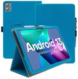 Case for WDYQJE A55/xiskt A5502/AISLPC A55 Android 13 Tablets 10 InchPremium Leather Business Folio Stand Cover with Hand Strap for Tablet,Light Blue.