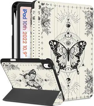 Wazzasoft for iPad A16 Case 2025 - for iPad 10th Generation Case Cute Women Girls Aesthetic Girly Butterfly Design Unique Pencil Holder Auto Sleep/Wake Tablet Cover for Apple 11/10 10.9 Inch