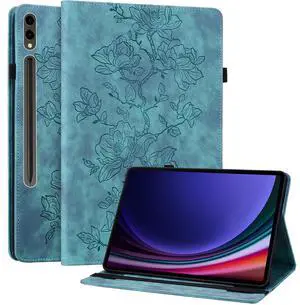 YHDXUYS Case for Samsung Galaxy Tab S10 Lite/S10 FE/S9 FE 5G 10.9 Inch/Tab S9 11 Inch, Tablet with Pencil Holder, Multiangle Stand Wallet Design Cover, Metal Flower