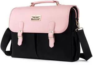 YORAMY 15.6 Laptop Bag for Women Black Work Tote with Rose Gold Accents Professional Office Briefcase Purse with 17 Pockets Stylish Business Shoulder Bag