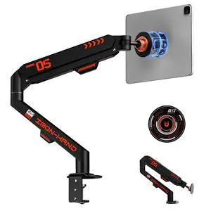 JINRAIKO Magnetic Tablet Stand, Adjustable Desk Mount for iPad & All Tablets, 360 Rotating Foldable Arm with Gas Spring, Heavy Duty Aluminum, for Home Office, Kitchen, Bedside, Studio, Black