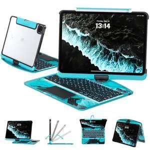 Tiaota Transparent Case with Keyboard for 2024 iPad Pro 11-inch (M4),with 7-Color Backlit Wireless Keyboard, 360°Rotatable Protective Case Multi-Touch Trackpad,with Pencil Holder,with Shortcuts,Blue