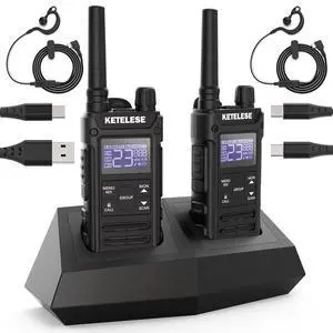 KETELESE T3G IP67 Waterproof Walkie Talkies for Adults, Heavy Duty 2 Way Radios with Earpiece, Three Charging Options, GMRS Radio, USB, NOAA, VOX(2 Pack), Black/Grey