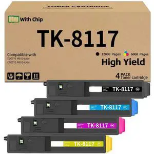 TK8117 TK-8117 Toner Cartridges With Chip Replacement for Kyocera TK-8117K TK-8117C TK-8117M TK-8117Y 1T02P30US0 1T02P3CUS0 1T02P3BUS0 Compatible with Kyocera ECOSYS M8124cidn M8130cidn (4 Pack)