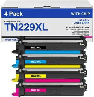 TN229XL TN229 Toner Cartridges 4 Pack MFC-L3780CDW MFC-L3720CDW Compatible for Brother TN229 TN229XL HL-L3280CDW HL-L3220CDW HL-L3300CDW HL-L3295CDW Printer TN 229XL TN-229XLBK/C/M/Y High Yield