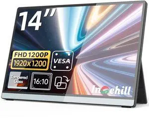 Intehill 14" Portable Monitor, WUXGA 1920x1200 Portable Screen with Full-Covered Tempered Glass, 16:10 USB-C HDMI External Display with Speakers & Stand, Travel Monitor Second Screen for Laptop, F14ZA